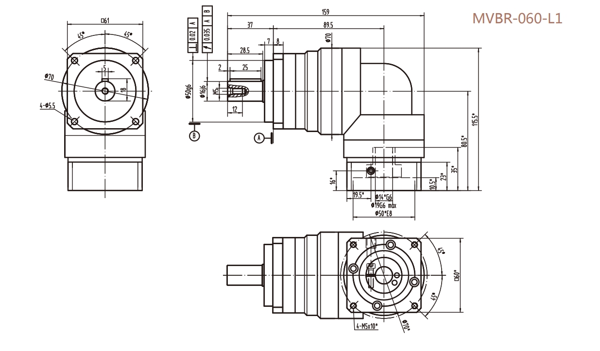 MVBR-060-L1系列精密行星減速器型號尺寸與圖紙